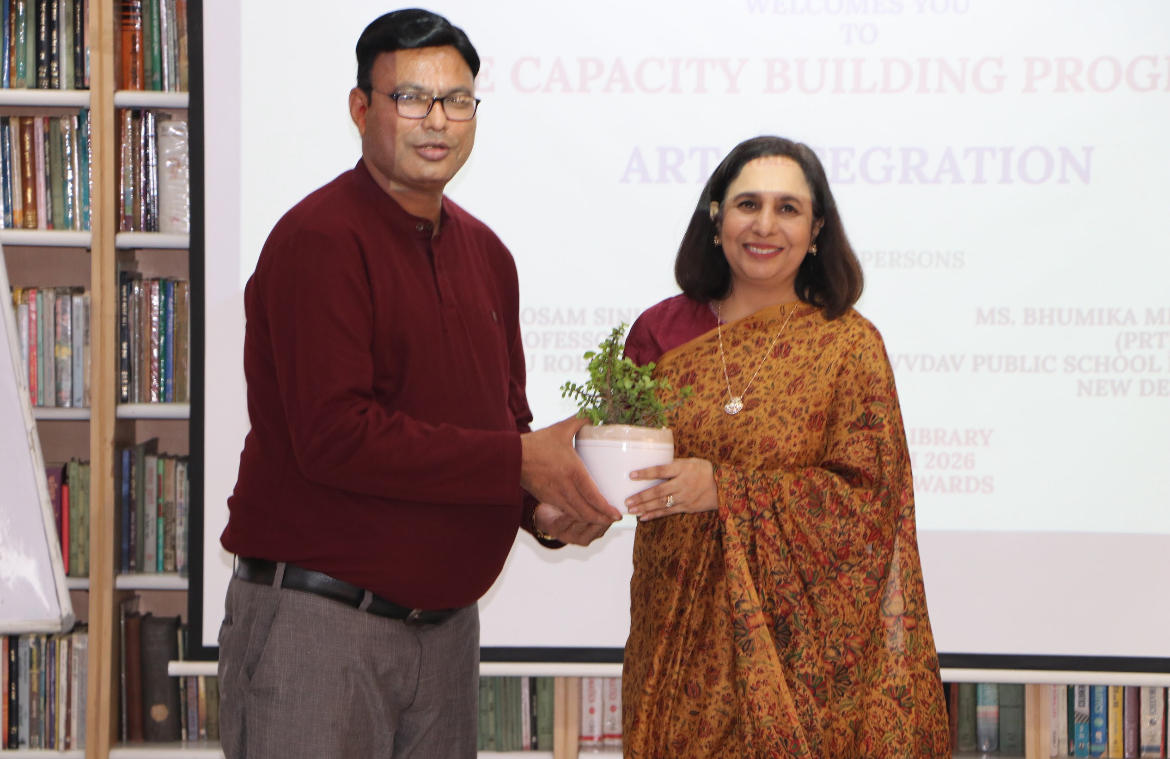 A CBSE Capacity Building Programme on Art Integration was conducted on 5 March 2026 to facilitate teachers to incorporate art effectively into classroom teaching. The workshop was facilitated by Dr. Mosam Sinha, Professor, BML Munjal University, Rohtak, and Ms. Bhumika Mehndiratta, PRT, VVDAV Public School, Vikas Puri, New Delhi. The programme highlighted how art can enhance creativity, engagement, and holistic learning among students.