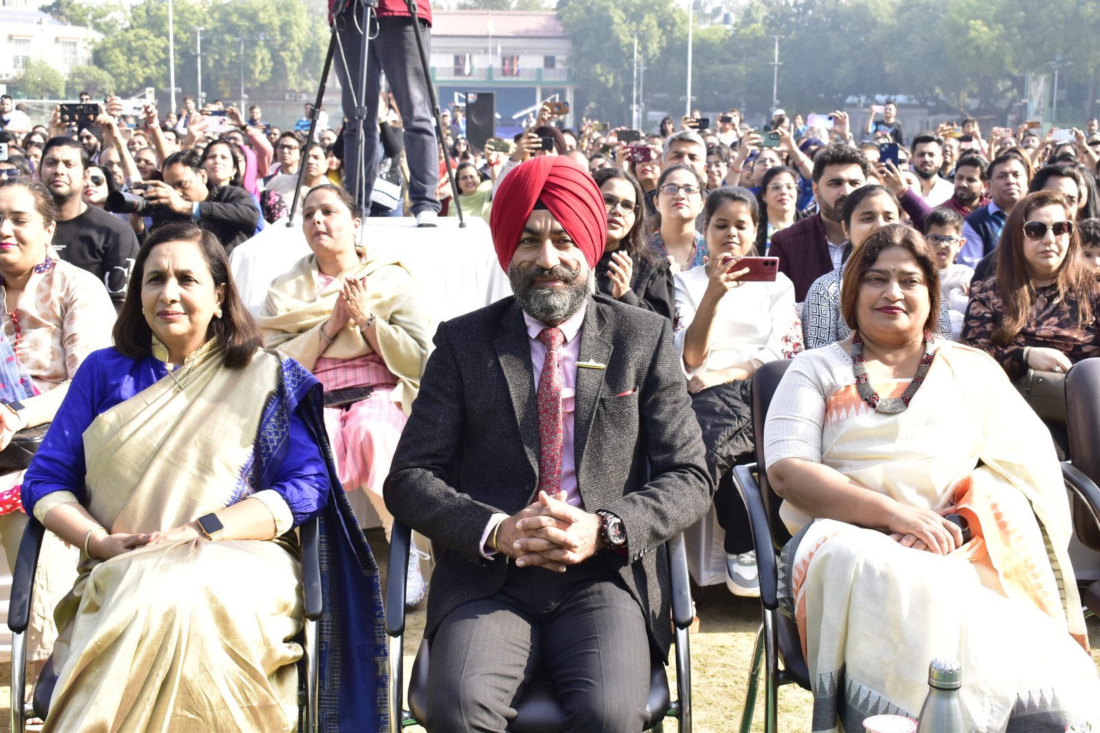 The grand finale was a heart-warming and inspiring moment, beginning with a spectacular performance by children with special needs, who showcased their incredible talent and determination. Their performance was met with admiration and applause before all participants joined in, creating a mesmerising display of unity, inclusivity, and national pride. The sight of all students performing together symbolised the essence of “Swarnim Bharat”.